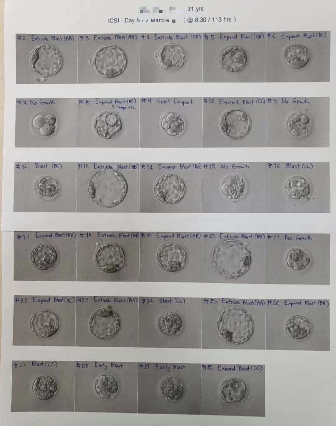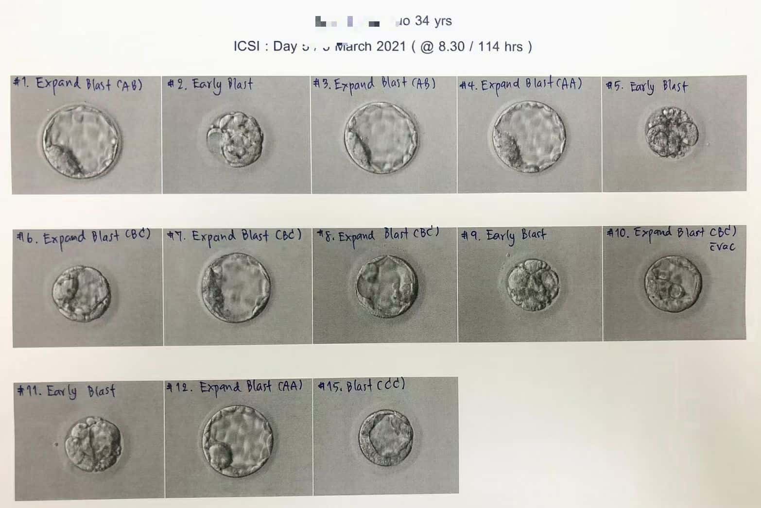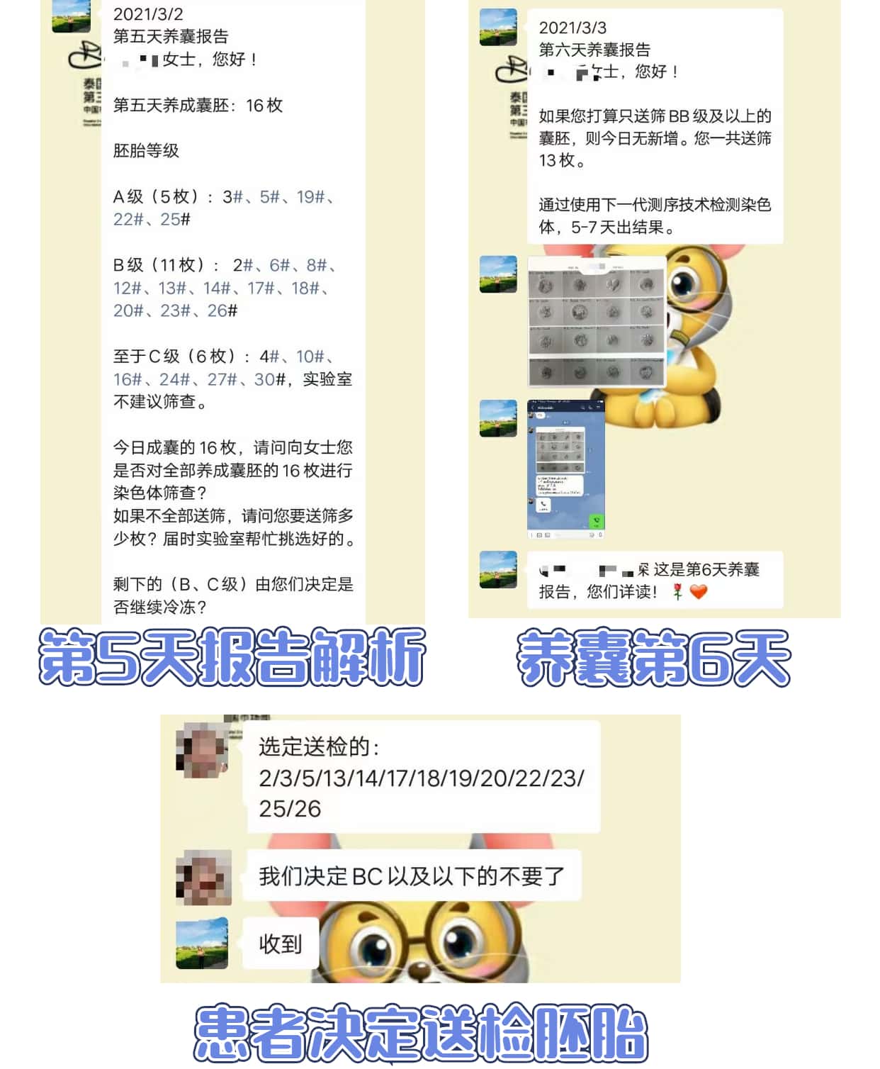 第五天养囊成功16枚,患者只优选最佳的A+B级别胚胎,最终送筛13枚